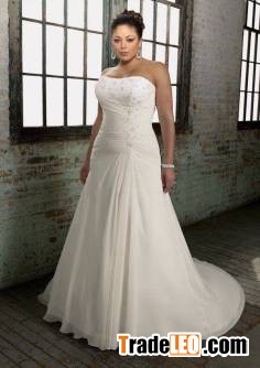 Chiffon Over Satin A-line Scoop Neck Chapel Train Appliques Plus Size Wedding Dress